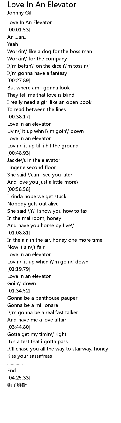 | [00:38.83] | Love in an elevator |