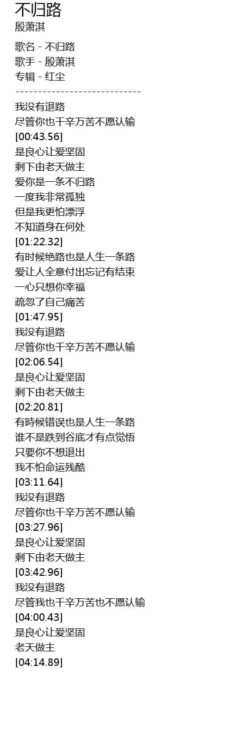 | [00:00.93] | 歌名-不归路 |
