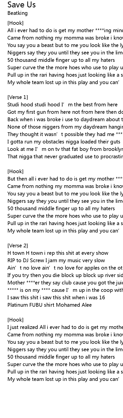| But then all i ever had to do is get my mother ****ing mind right | |
