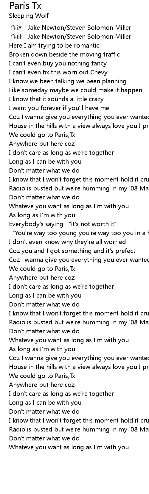 | [00:36.45] | We could go to Paris,Tx |