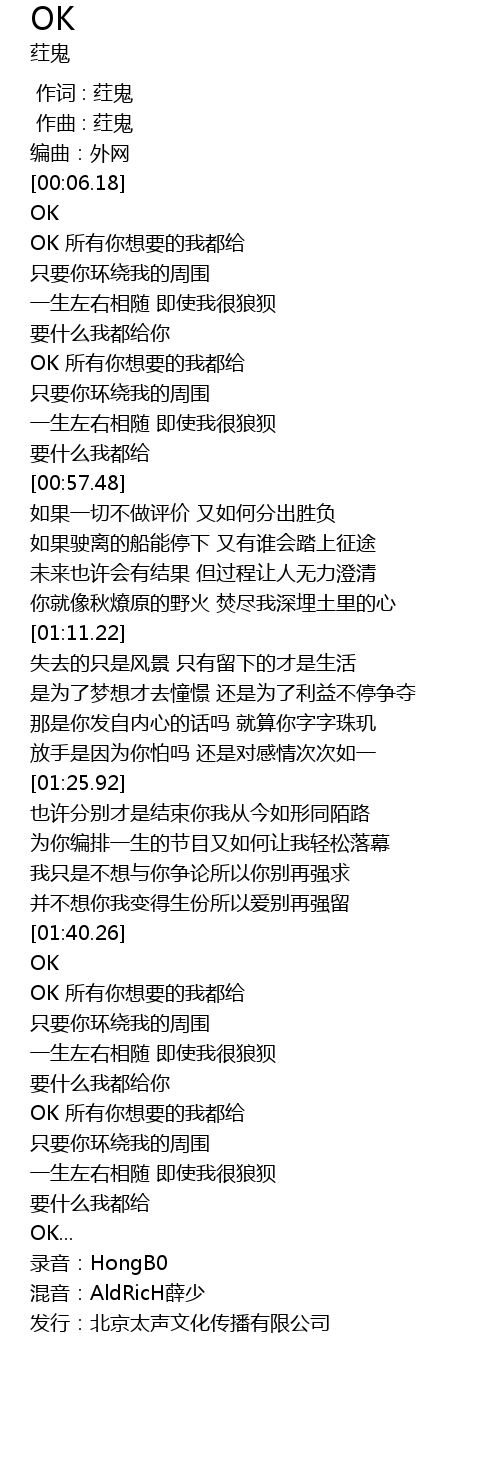 | [00:43.31] | OK 所有你想要的我都给 |