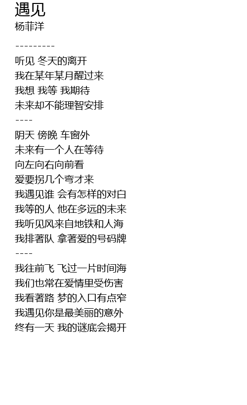 | [02:35.72] | wǒ yù jiàn nǐ shì zuì měi lì de yì wài |