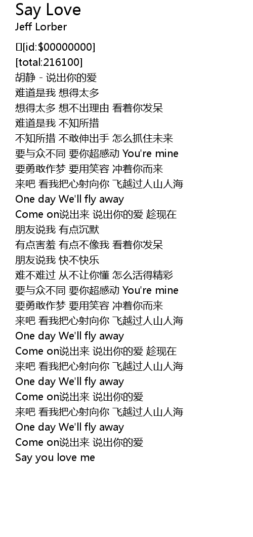 | [00:02.0] | hú jìng shuō chū nǐ de ài |
