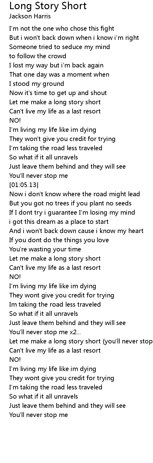 Let me make a long story short (you'll never stop me) x8 |