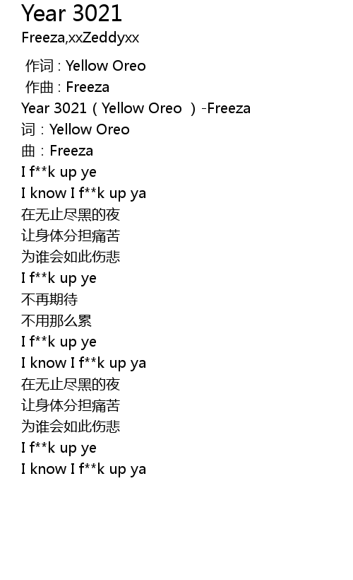 | [00:00.00] | Year 3021(Yellow Oreo )-Freeza |