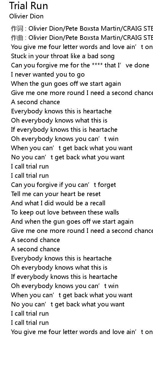 | Song | Trial Run |