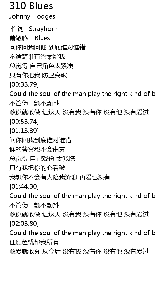 | [01:44.92] | Could the soul of the man play the right kind of blues |