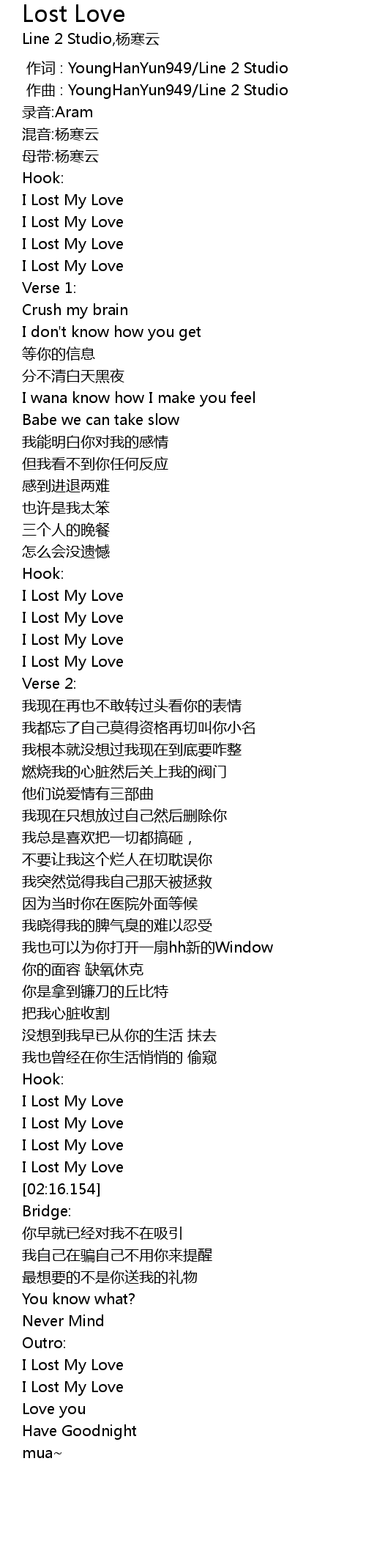 | [02:40.237] | I Lost My Love |