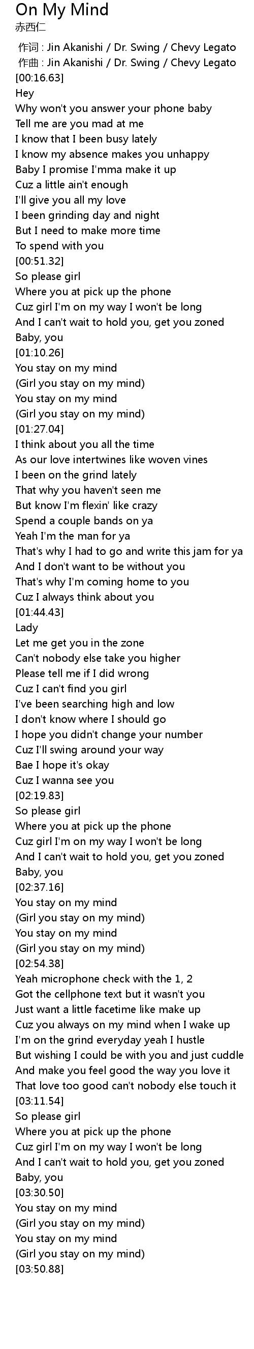 | [03:46.31] | Girl you stay on my mind |