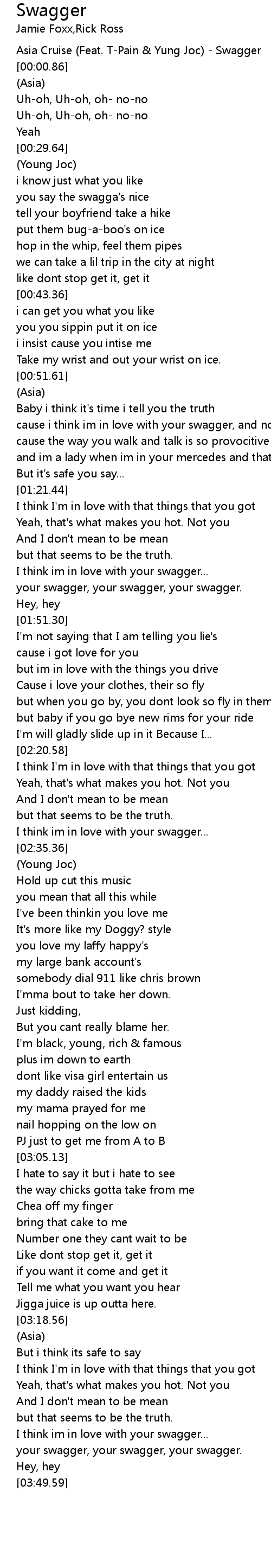 | [00:-7.52] | Asia Cruise (Feat. T-Pain & Yung Joc) - Swagger |