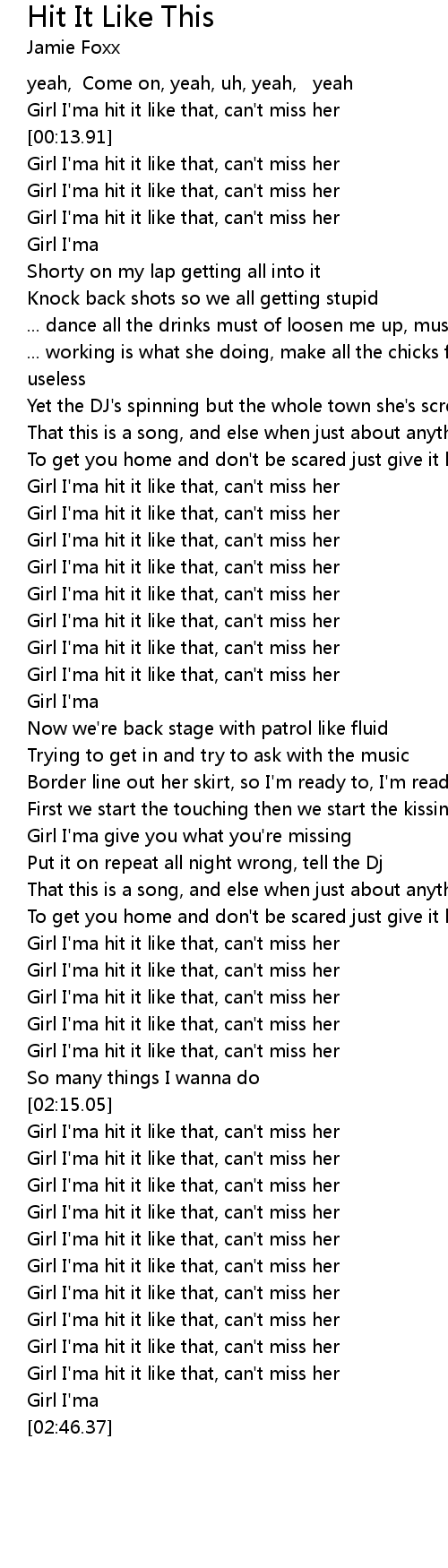 Girl I'ma hit it like that, can't miss her |