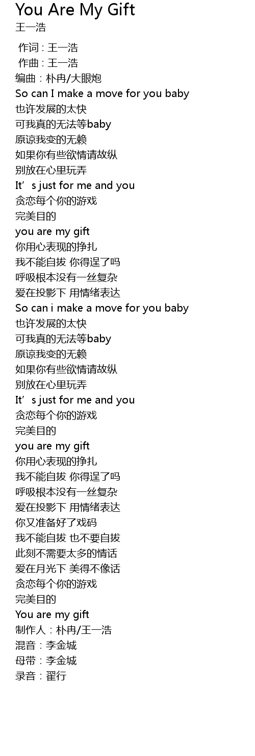 | [01:08.53] | you are my gift |