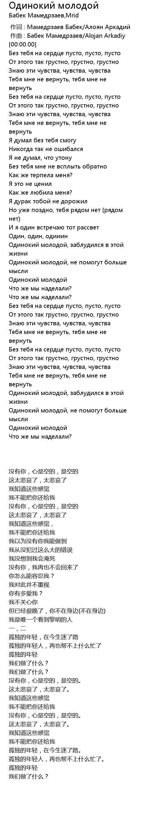 Одинокий молодой, заблудился в этой жизни |