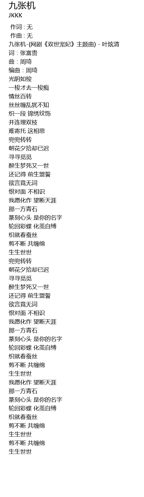 | [00:00.197] | 九张机-(网剧《双世宠妃》主题曲) - 叶炫清 |