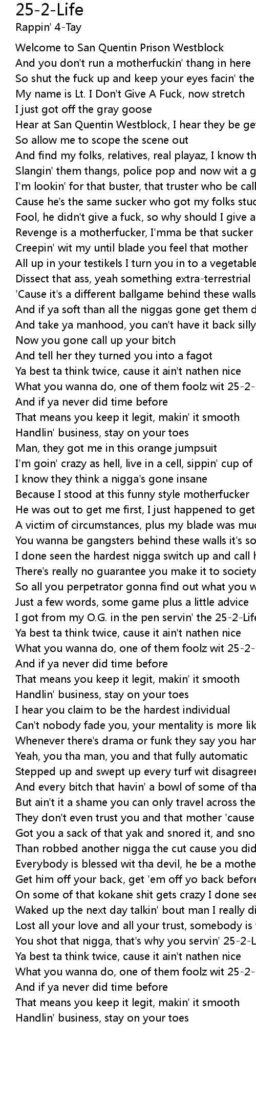 You shot that nigga, that's why you servin' 25-2-Life |