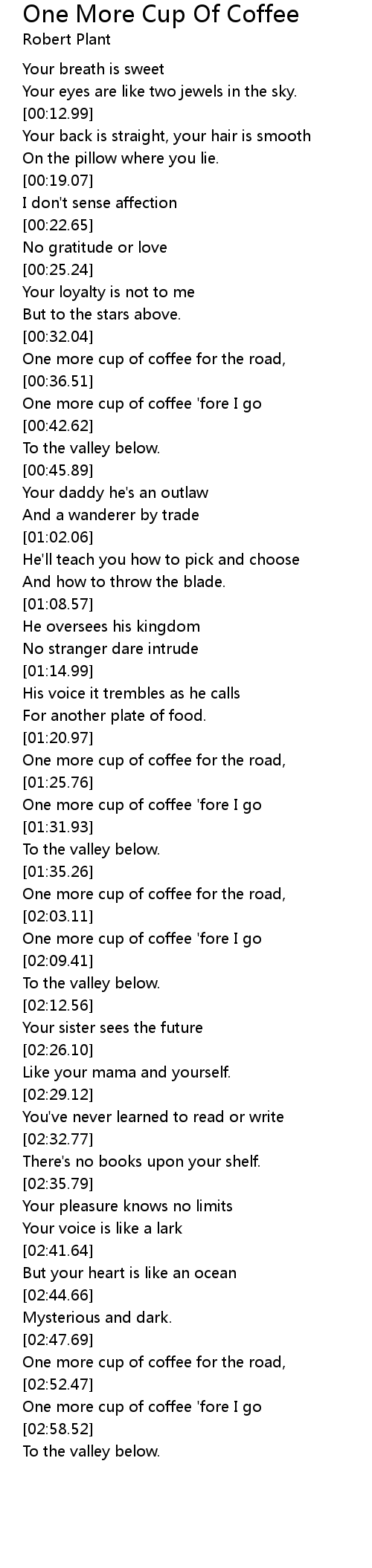 One more cup of coffee 'fore I go |