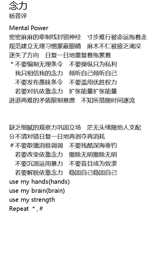 | 我只相信我的念力 倾听自己倾听自己 | |