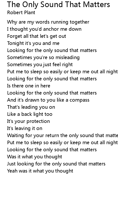 Just looking for the only sound that matters |