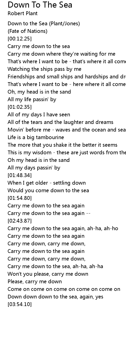 Carry me down to the sea again |