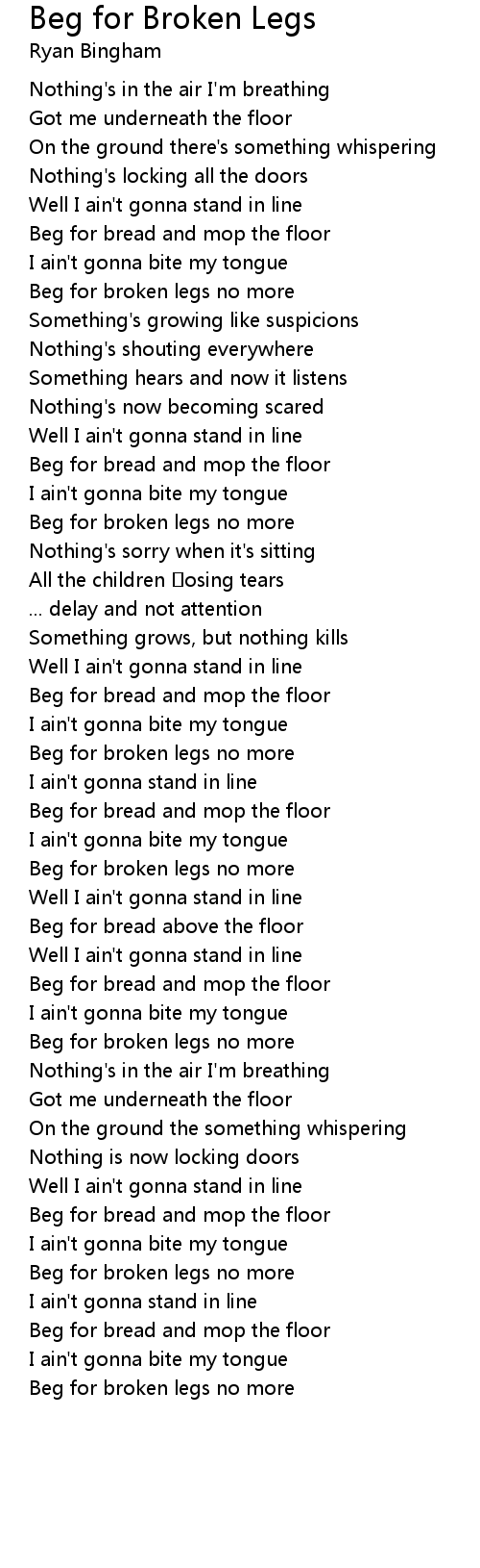 | Beg for broken legs no more |