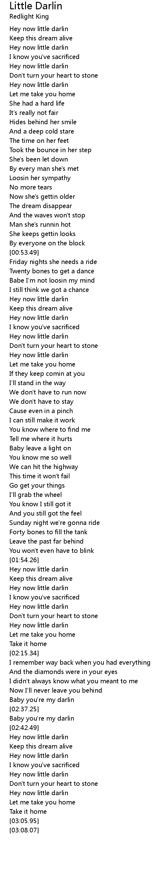 Hey now little darlin |