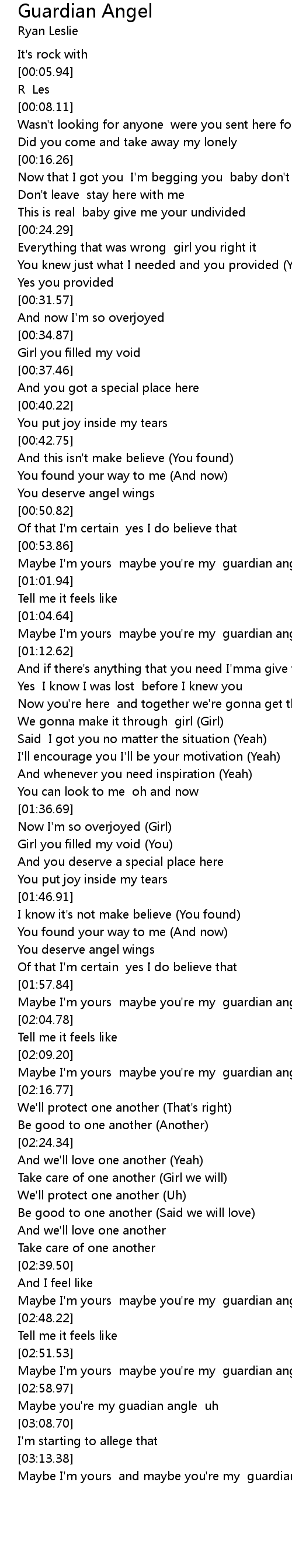 Maybe I'm yours maybe you're my guardian angel |