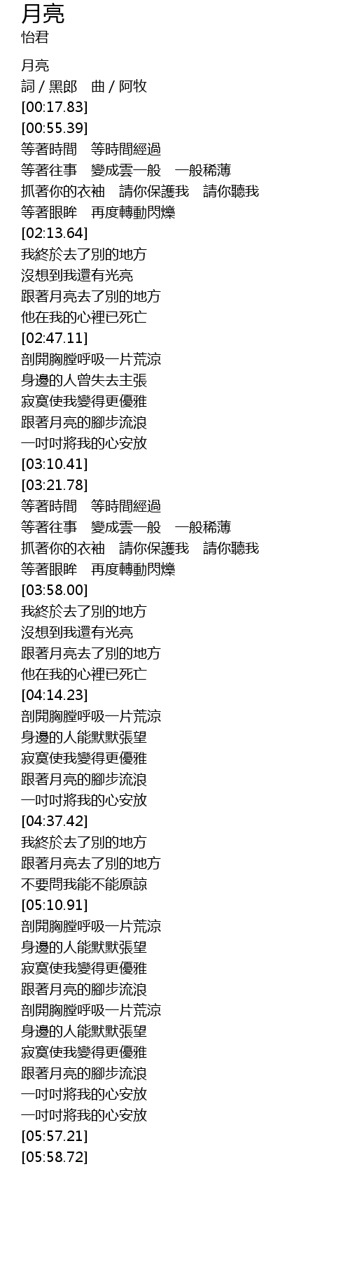 | [05:01.80] | 跟著月亮去了別的地方 |