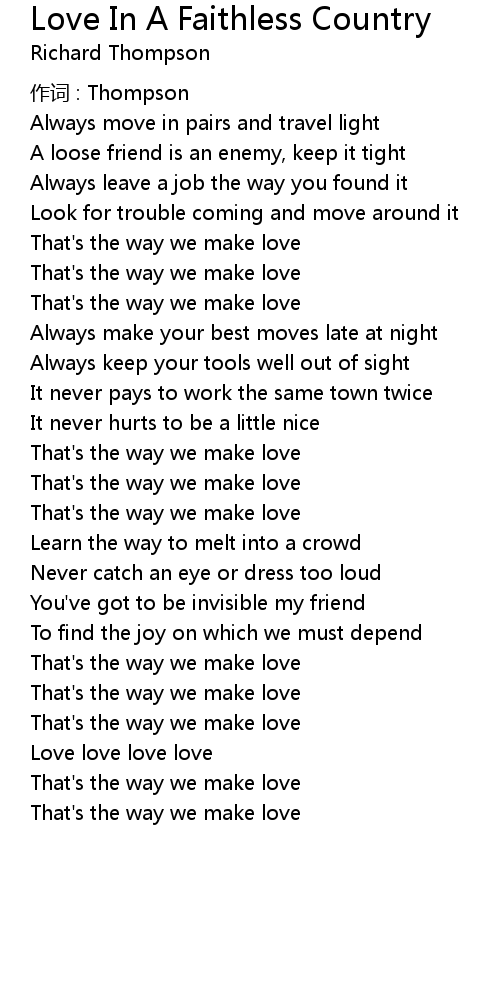 | Song | Love In A Faithless Country |