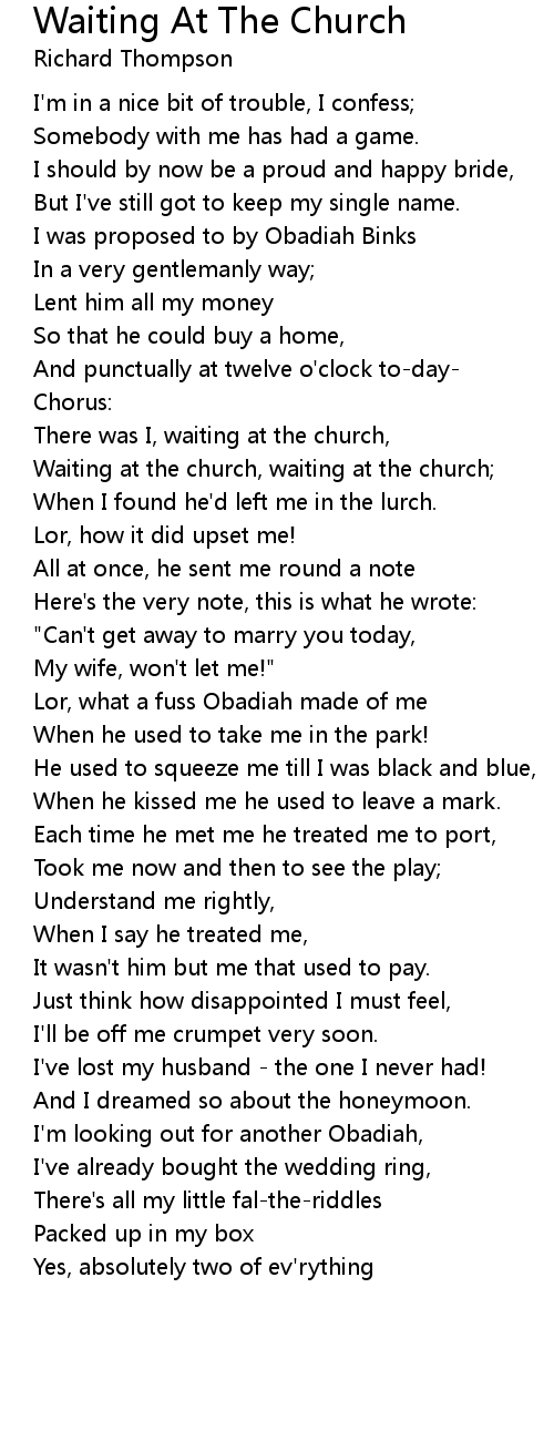 There was I, waiting at the church, |