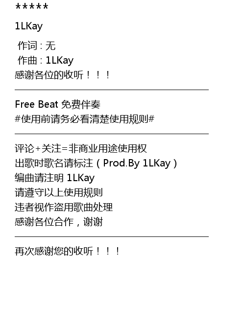 | [00:17.938] | 出歌时歌名请标注(Prod.By 1LKay) |