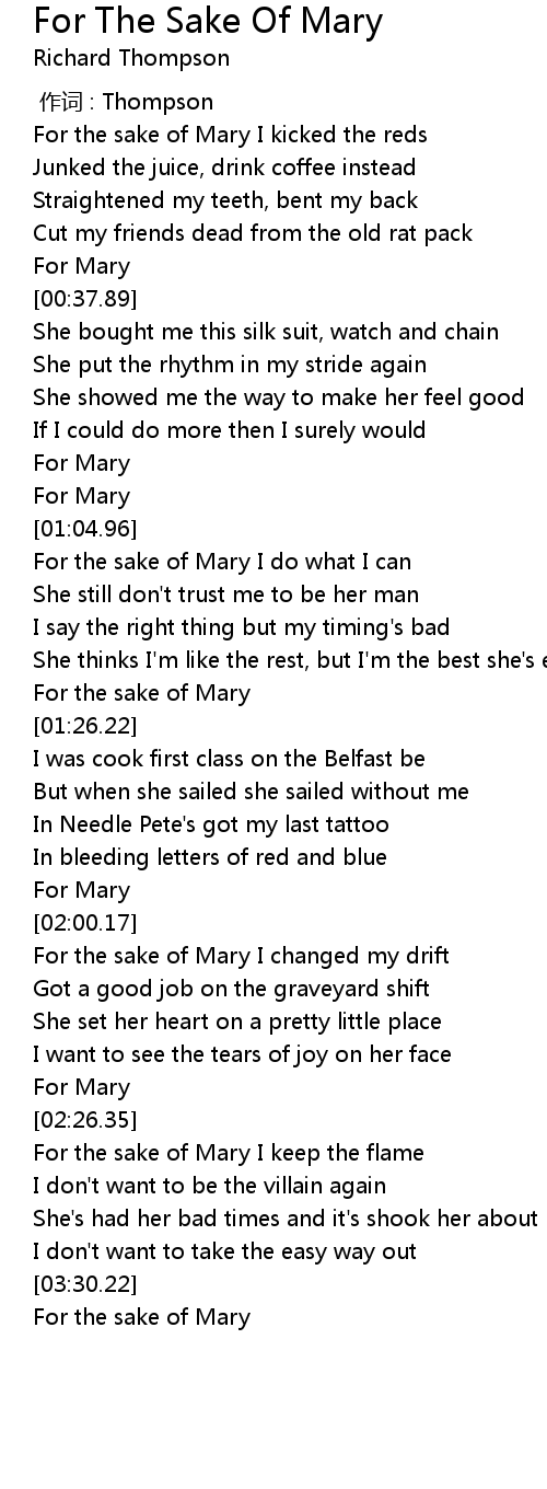 | [03:42.63] | For the sake of Mary |