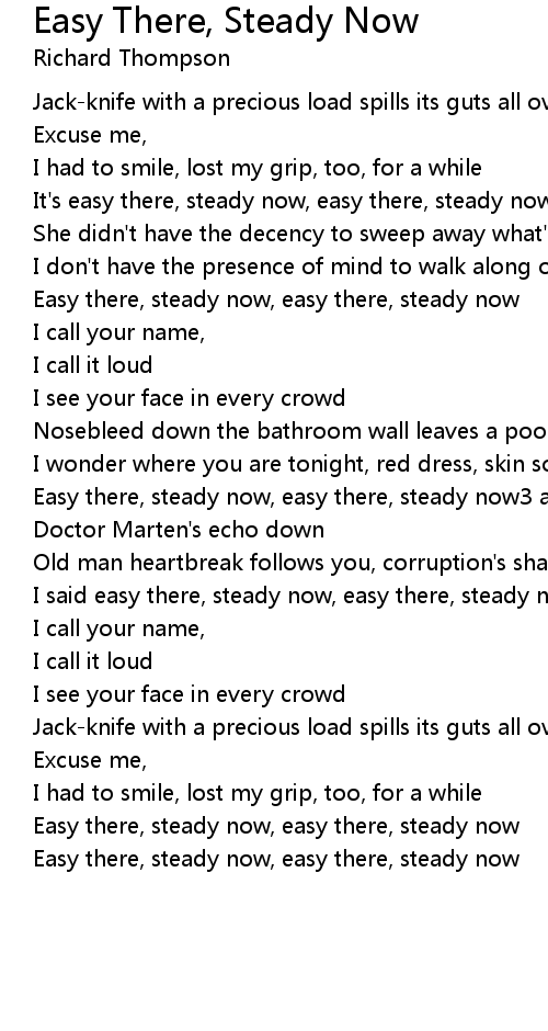 It's easy there, steady now, easy there, steady now |