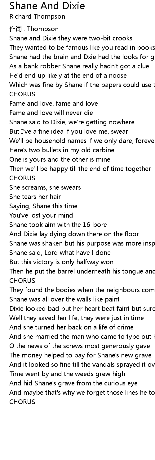 | Song | Shane And Dixie |