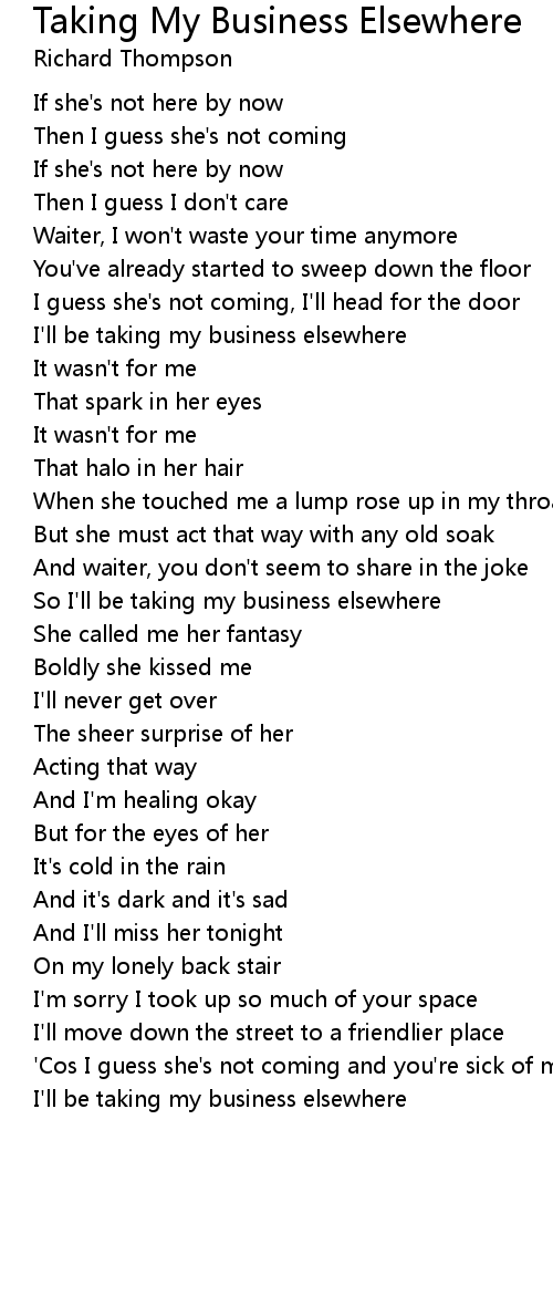 I guess she's not coming, I'll head for the door |
