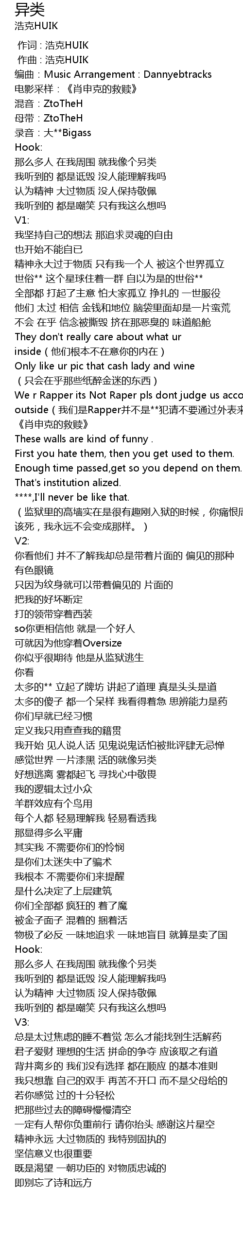 | [00:00.000] | 作词 : 浩克HUIK |