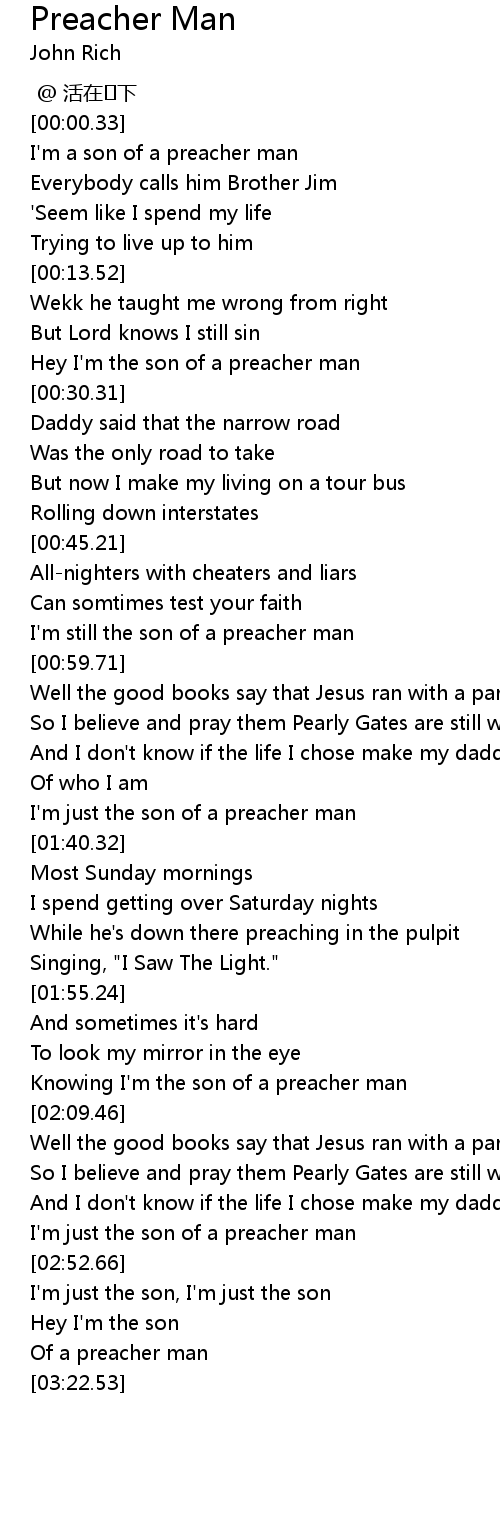 | [00:53.57] | I'm still the son of a preacher man |