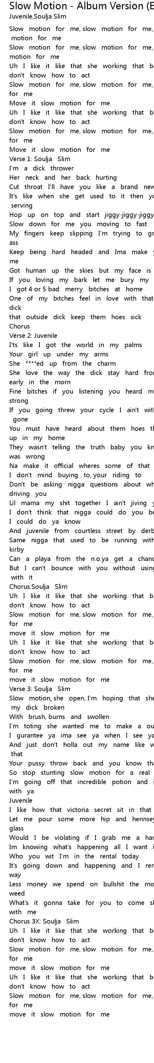 Slow motion for me, slow motion for me, move it slow motion for me |