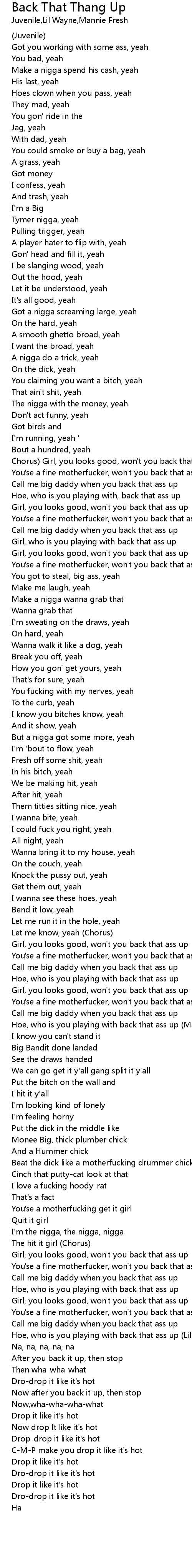 You'se a fine motherfucker, won't you back that ass up (Juvenile) |