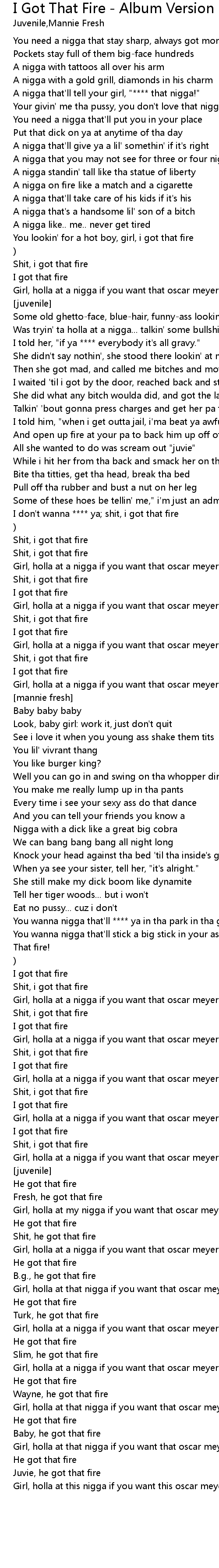 I don't wanna **** ya; shit, i got that fire |