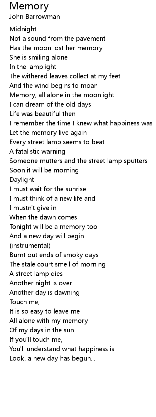 Memory, all alone in the moonlight |
