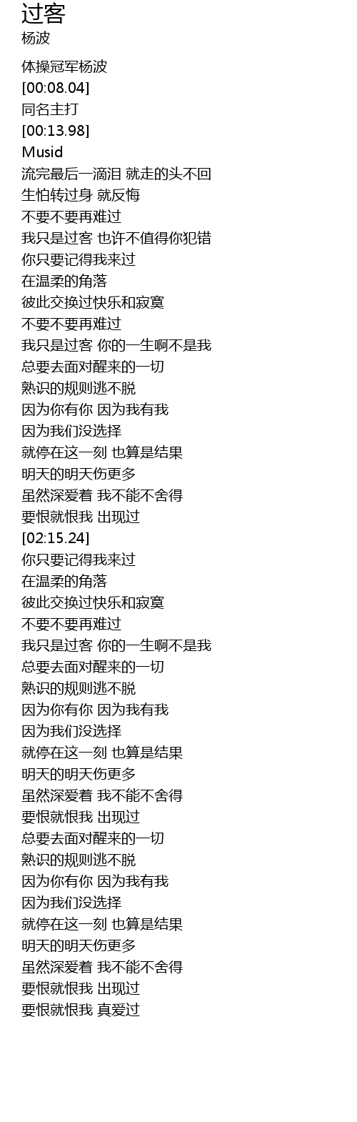 | [00:52.99] | 我只是过客 也许不值得你犯错 |
