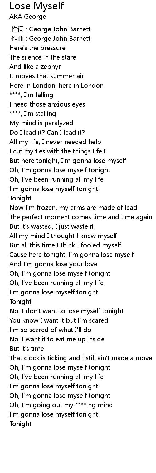 | [00:50.769] | Oh, I'm gonna lose myself tonight |