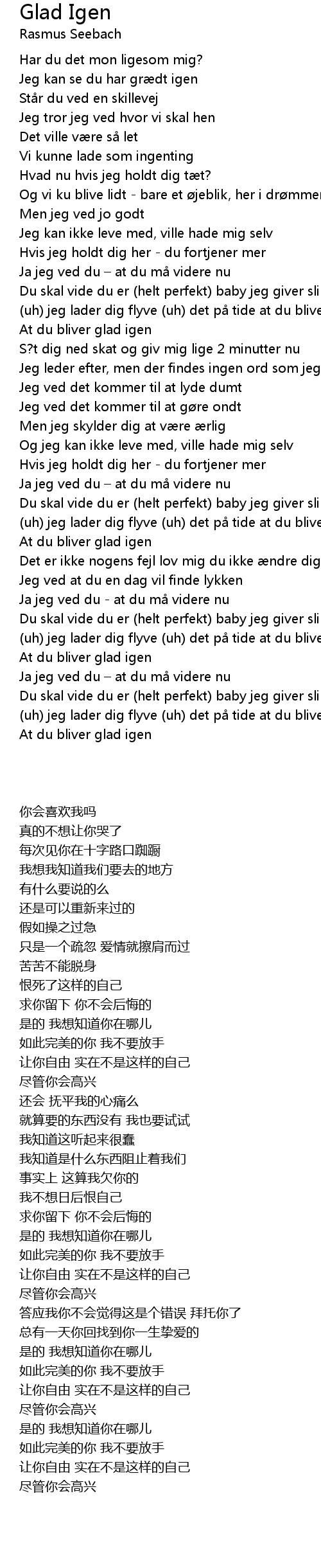 | [03:00.73] | At du bliver glad igen |