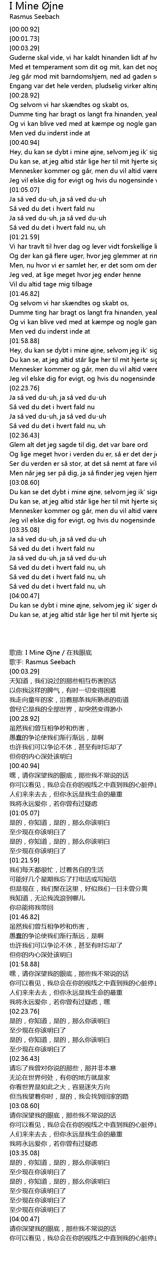 | [04:00.93] | Du kan se dybt i mine jne, selvom jeg ik' siger det ofte nok |