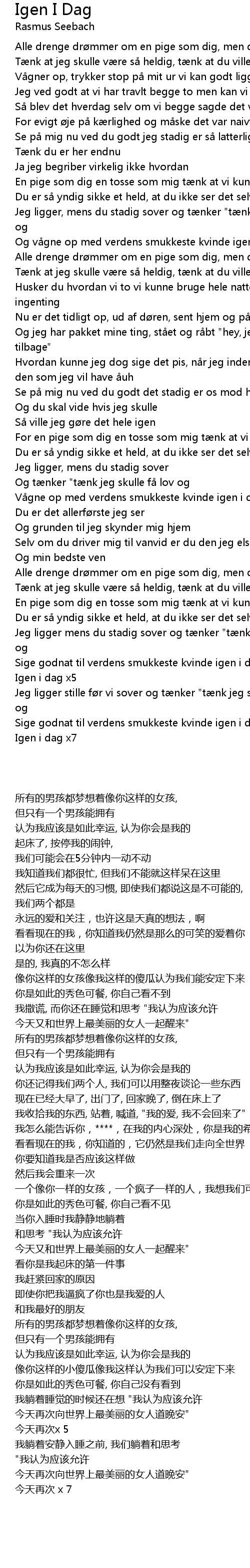 | [02:18.71] | V gne op med verdens smukkeste kvinde igen i dag" |