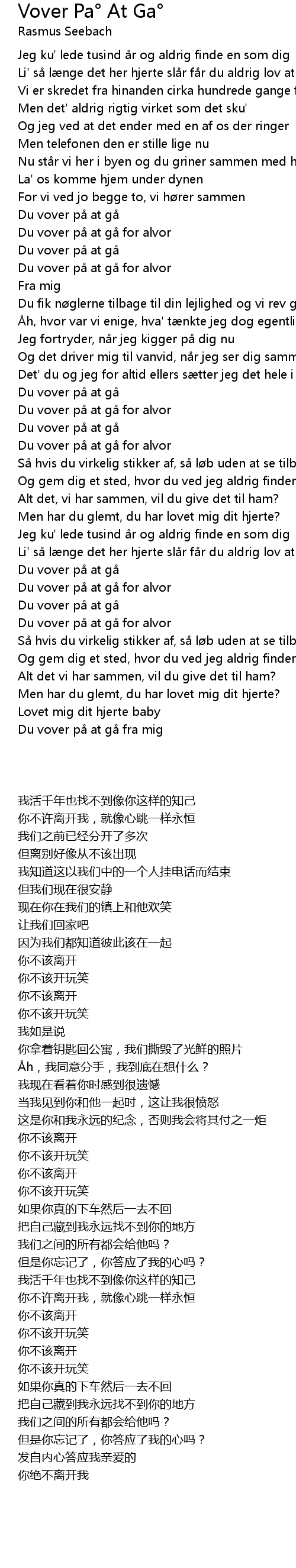 | [01:50.30] | Jeg fortryder, n r jeg kigger p dig nu |