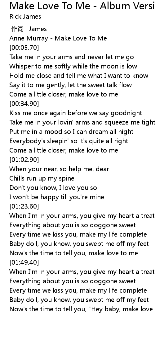 | [00:55.70] | Come a little closer, make love to me |
