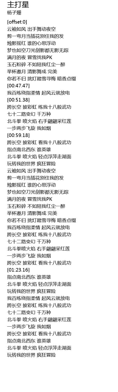 | [00:56.69] | 北斗拳 喷火焰 右手翩翩采红莲 |