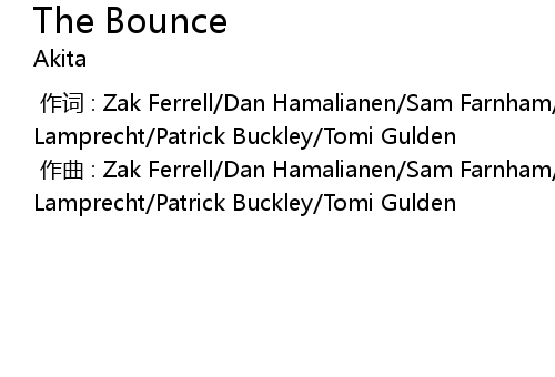 [00:00.000] 作曲 : Zak Ferrell/Dan Hamalianen/Sam Farnham/Charlie Lamprecht/Patrick Buckley/Tomi Gulden