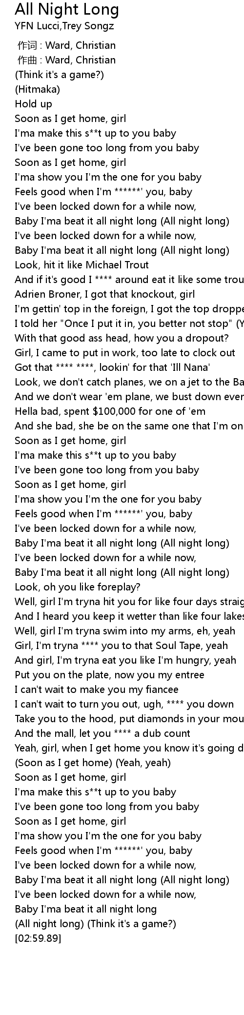 | [02:49.10] | Baby I' ma beat it all night long All night long |